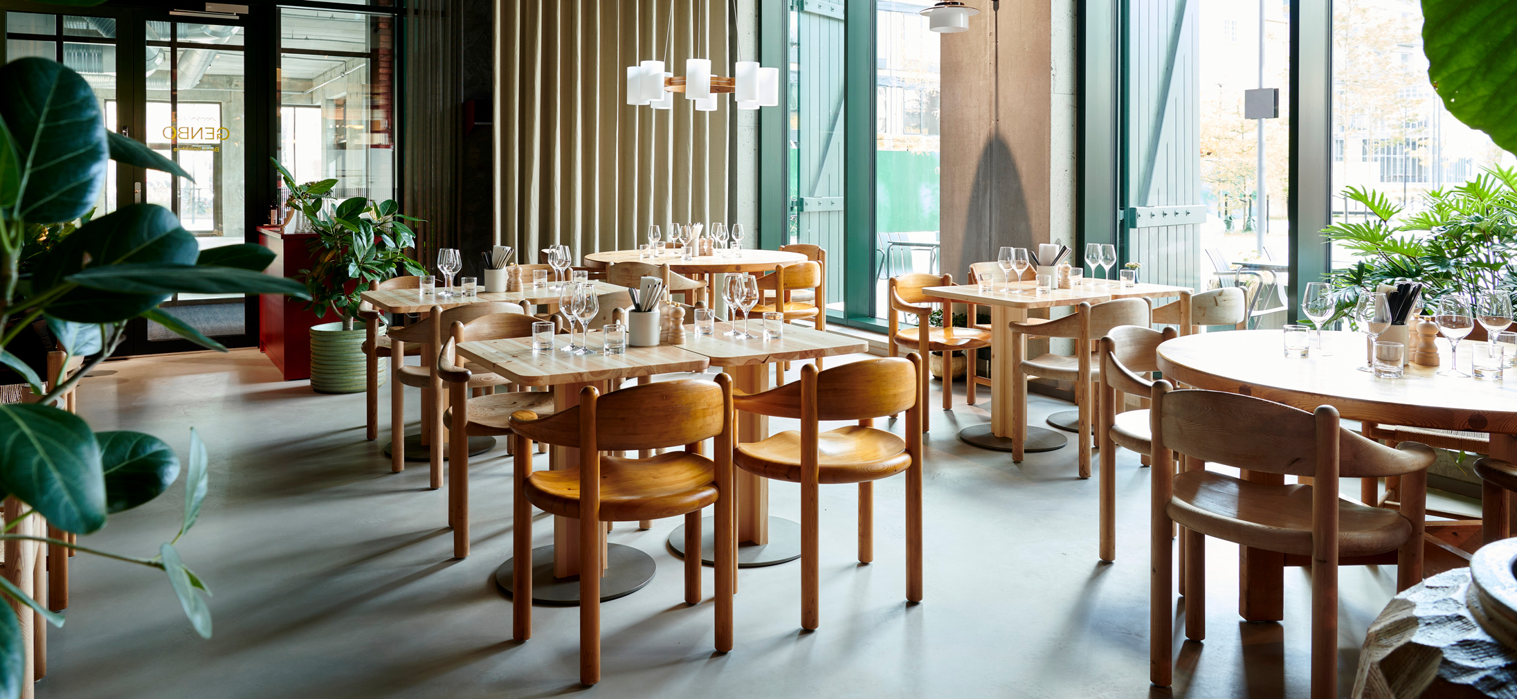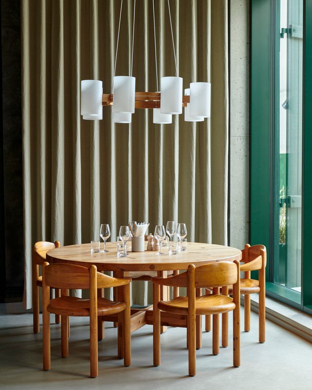 On the restaurant floor, the chairs sit alongside hefty pine tables, raw steel, concrete, greenery, and touches of red. This interplay creates unity through contrasts, where warm pine softens the industrial edges and evokes a distinctly Danish sense of hygge. The Daumiller Armchair becomes the anchor of the interior, tying together sustainability, craft heritage, and a cozy ambience that works throughout the day.